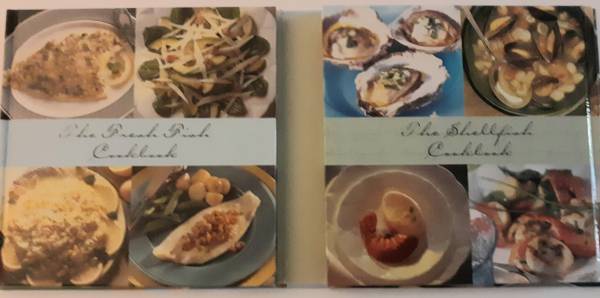 This is a two volume set. It includes The Fresh Fish Cookbook and The Shellfish Cookbook. The books contain excellent photographs and more than 60 delicious recipes for soups, appetizers and entrees. A must for lovers of the ocean's bounty.