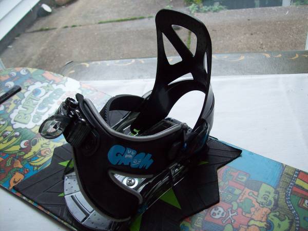 This is the BURTON CHOPPER Kid's 115cm Snowboard with GROM Bindings. Great graphics! Condition: used, good, minor edge chips Also listing BURTON $420 Men's size 13 PHOTON BOA Snowboard Boots Black,...