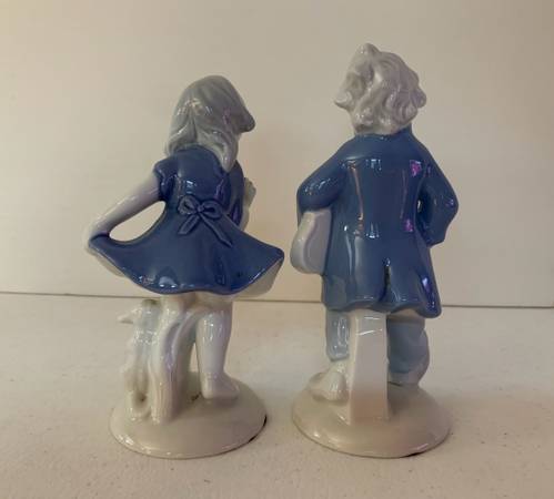 Vintage Gerold Porzellan “Boy with Violin” and “Girl with Puppy” porcelain figurines. Made in Germany. About 5.5 inches tall. $25 for the pair.