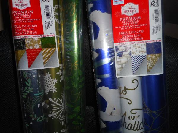 FIRST PIC.. 3 separate rolls with 2 rolls each matching gift cards and tags premium foil beautiful each roll 60 sq ft. SECOND PIC. 3 roll premium gift foil 75 sq ft. THIRD PIC. 2- 4 roll each beautiful premium foil wrap each 75 sq ft. FORTH PIC. 2 pkg. 3 roll each reversable premium so 6 different patters as seen in photo foil gift wrap 65 ft each pkg.. FIFTH PIC. 4 rolls 45 sq ft each first roll in pic pioneer women foil gift wrap second premium.. third American greeting forth roll premium all 4 have 45 sq ft. any questions let me know total retail value $70.84 TAKE ALL FOR 40.00 IF YOU WANT SEPERATE PLEASE MESSAGE ME FOR PRICE THANK YOU