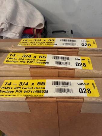 Vantage Window Panels (Shutters), Forest Green. 2 Panels per box. 2 Boxes (4 Panels) x 67" long (14.75-in W x 66.75-in H) 3 Boxes (6 Panels) x 55" long (14.875-in W x 54.75-in H) Paintable