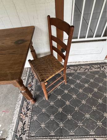 Selling this solid wooden table with two matching wooden chairs. The set is sturdy, clean, and perfect for a kitchen, dining room, porch, or small apartment.Delivery possible for a fee depending on distance.
