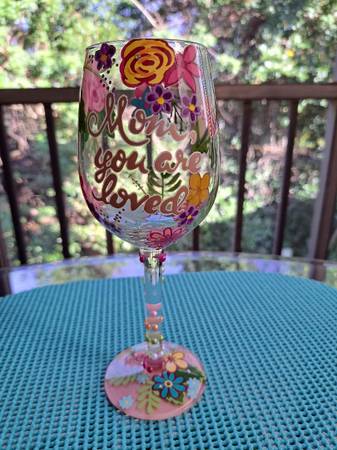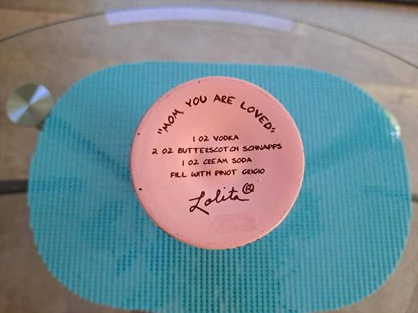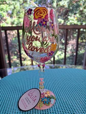 Designed by Tracy Lolita Yancey in 2017, this sassy and colorful 15 oz wine glass combines hand painted artwork and fun bead accents with sassy messages that celebrate any occasion in style! Made from artisan blown glass, it comes with a unique cocktail recipe painted under its stemmed base.