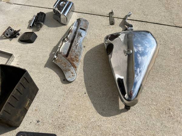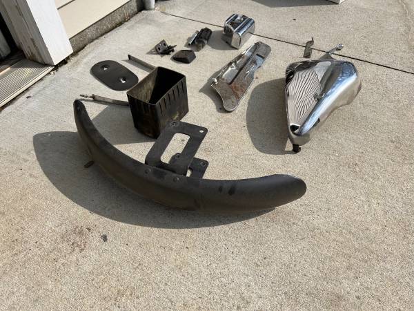 Harley Davidson 1994 and 1999 Sportster parts. Fender (sold) Rubber battery holder $10 Battery strap $5 Rubber handle bar bushings (sold) Tail light brackets $5 Oil tank cover (sold) Master cylinder...