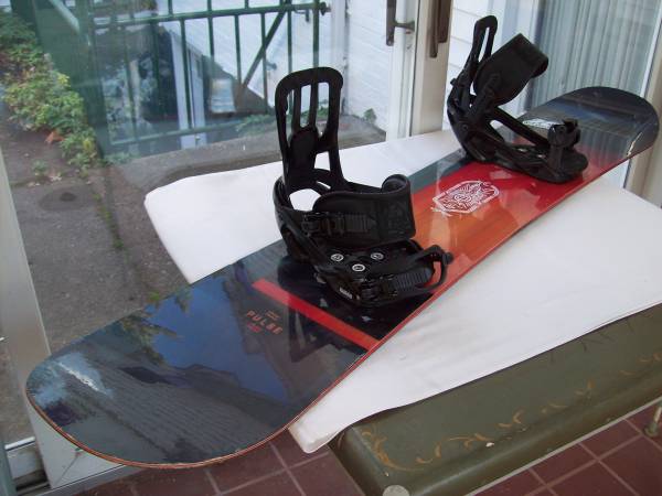 This is a SALOMON Pulse 149cm Snowboard + SALOMON Bindings Condition: used, good, minor edge chips Also listing BURTON $420 Men's size 13 PHOTON BOA Snowboard Boots Black, and several more...