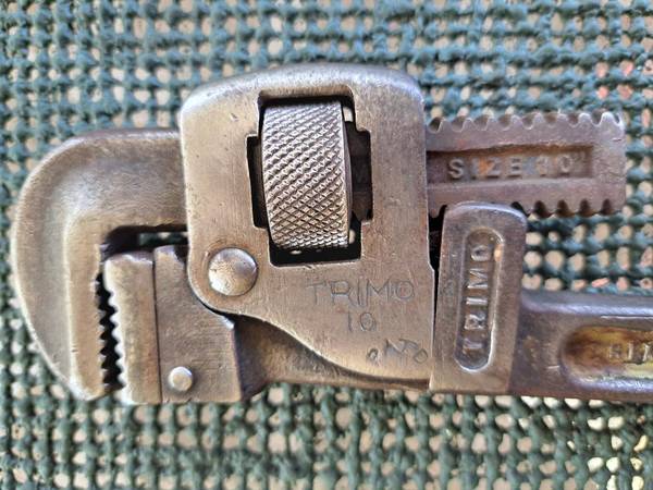 Antique Trimo Stillson 10” rocker straight pipe wrench - tools - by...